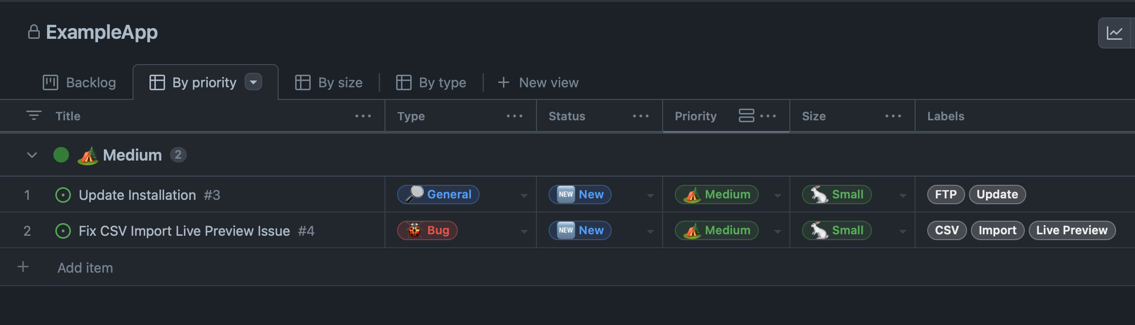 We can even use GitHub's Projects to add additional metadata and simplify task management.